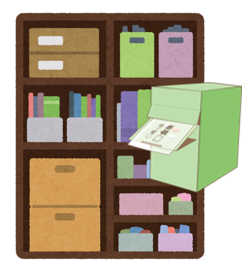 以前は、袋に入ったまま一包分をちぎっておいていましたが、袋はだんだん小さくなるので置き場所が定まりませんでした。いつも、どこにやったか探していました。今は、リビングの戸棚の中に入れているので、少なくなっても大きさ変わらず、フィットしています。