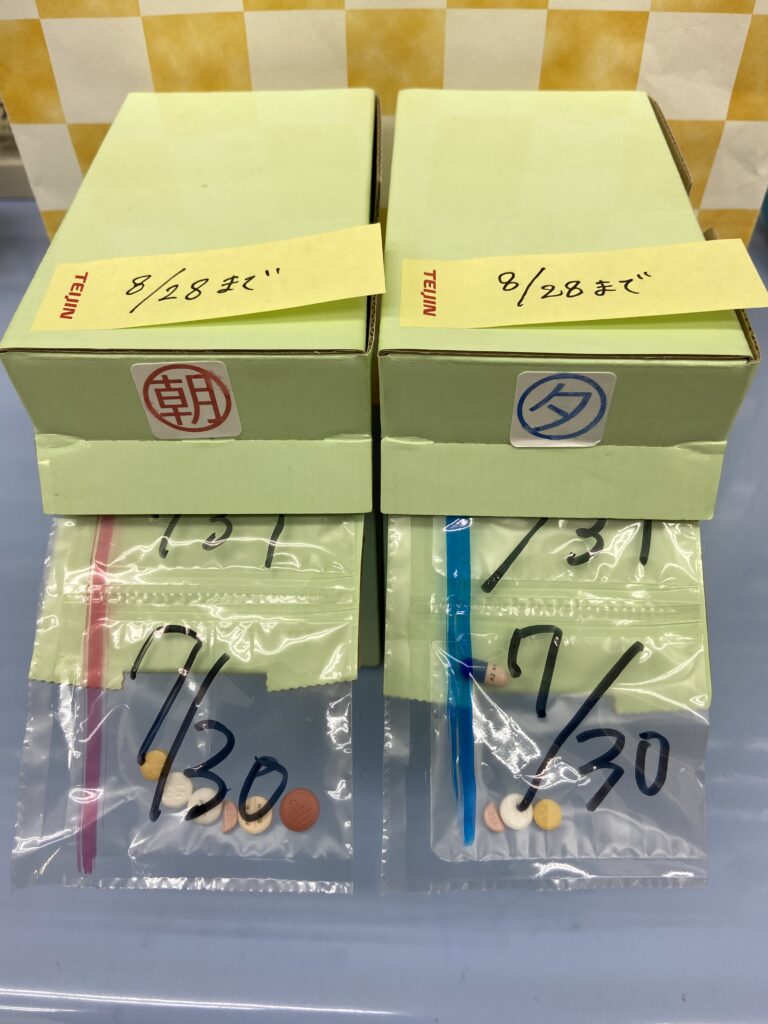 いつも飲み忘れがあり、残薬調整をしていました。しかし、お薬束®をお使いになった後は、紙袋で持ってこられ「全部飲めた!」と、自慢げにお話しくださります。