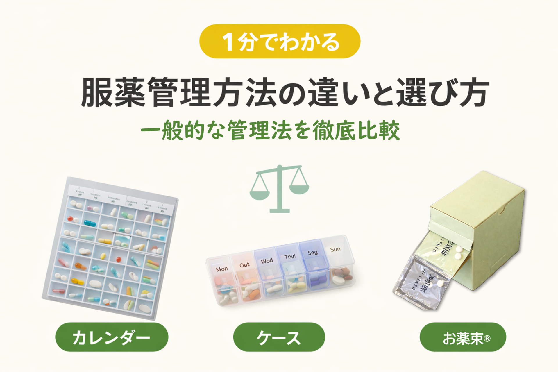 管理方法 その場で1回分ずつ 日付・時間 持ち運び 卓上